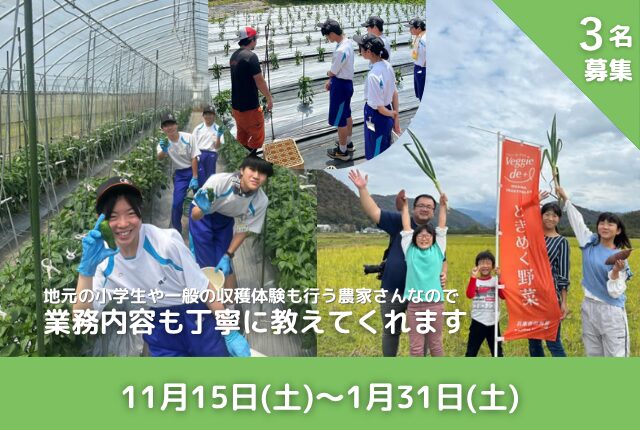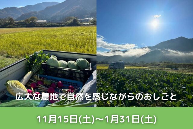 冬のお野菜をより多くの新鮮な野菜を皆様の食卓にお届けするため、一緒に汗を流してくれる仲間を募集しています。